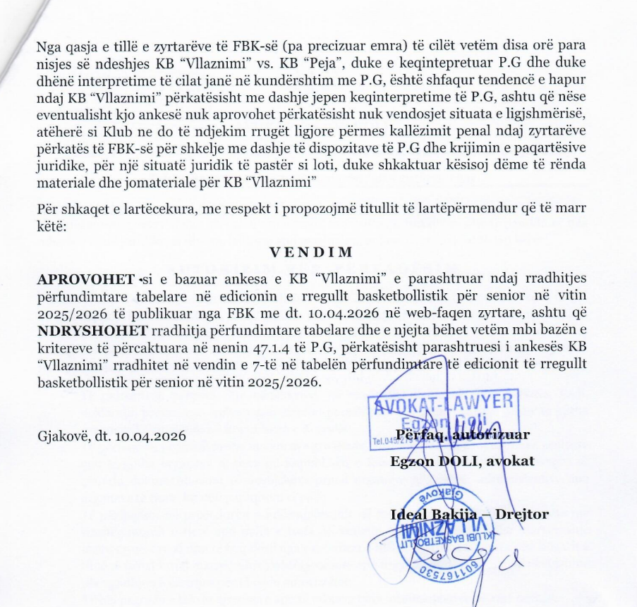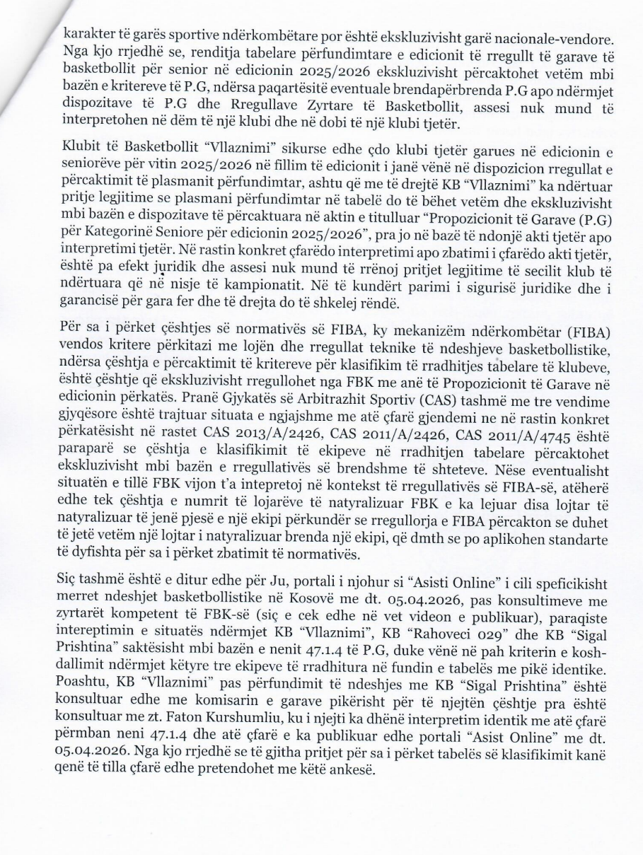 Sot zhvillohet ndeshja e fundit në basketbollin kosovar për stinorin e rregullt 2025/26.
